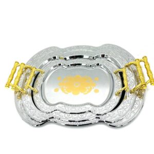 3 Piece Metal Flower Design Silver Serving Dish