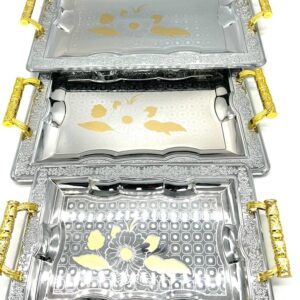 3 Piece Metal Silver and Gold Serving Dish