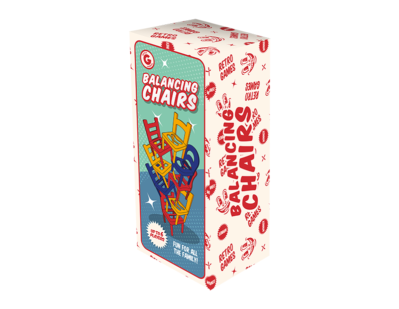 The balancing chairs game can be played by up to 6 players and is a fun twist on the traditional game Jenga.