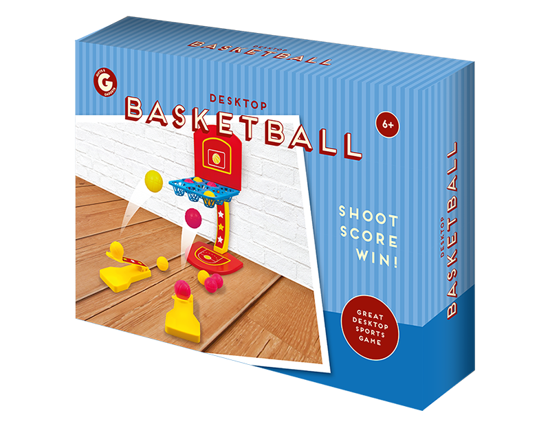 Keep entertained with this Desktop basketball. A great game for work or school places. Each pack contains 10 mini Basketballs, 2 shooters and a hoop withstand.