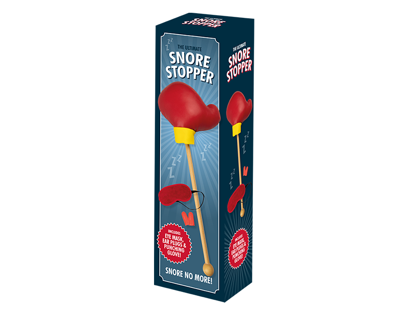 The ultimate snore stopper is complete with an eye mask, earplugs and punching glove.