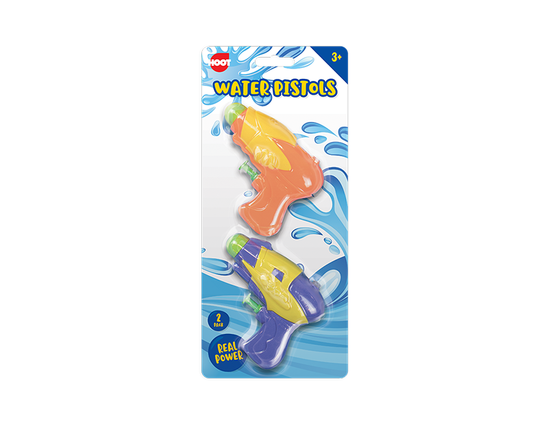 This pack of Water Pistols contains two individual toys that offer awesome water blasting fun. Each pistol is constructed from durable plastic, is filled from the top with a plastic cap to prevent spilling water and features a simple push trigger to shoot water.